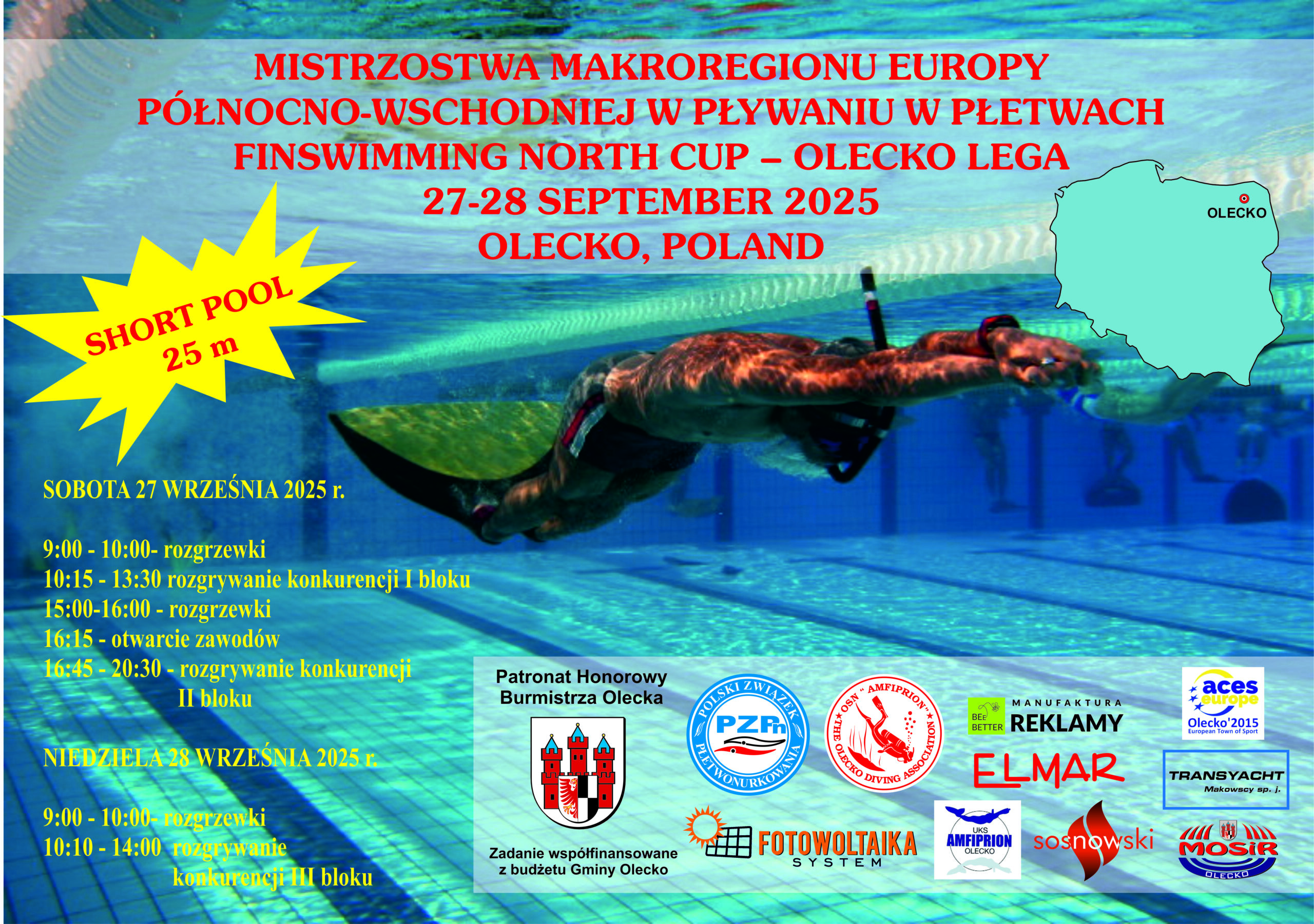 W dniach 27-28 września 2025 roku po raz dziewiąty odbędą się na pływalni w Hali Lega Mistrzostwa Makroregionu Europy Północno-Wschodniej w Pływaniu w Płetwach. Pierwsze starty podczas Finswimming North Cup już w sobotę o godz. 10:15.