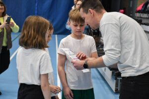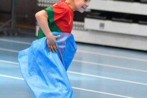 Na uczestników czekało pięć pełnych energii konkurencji – od wyścigów w workach, przez kozłowanie piłki, aż po slalom z kijem do unihokeja i piłką tenisową. Nie zabrakło również sprawdzianu wiedzy sportowej.