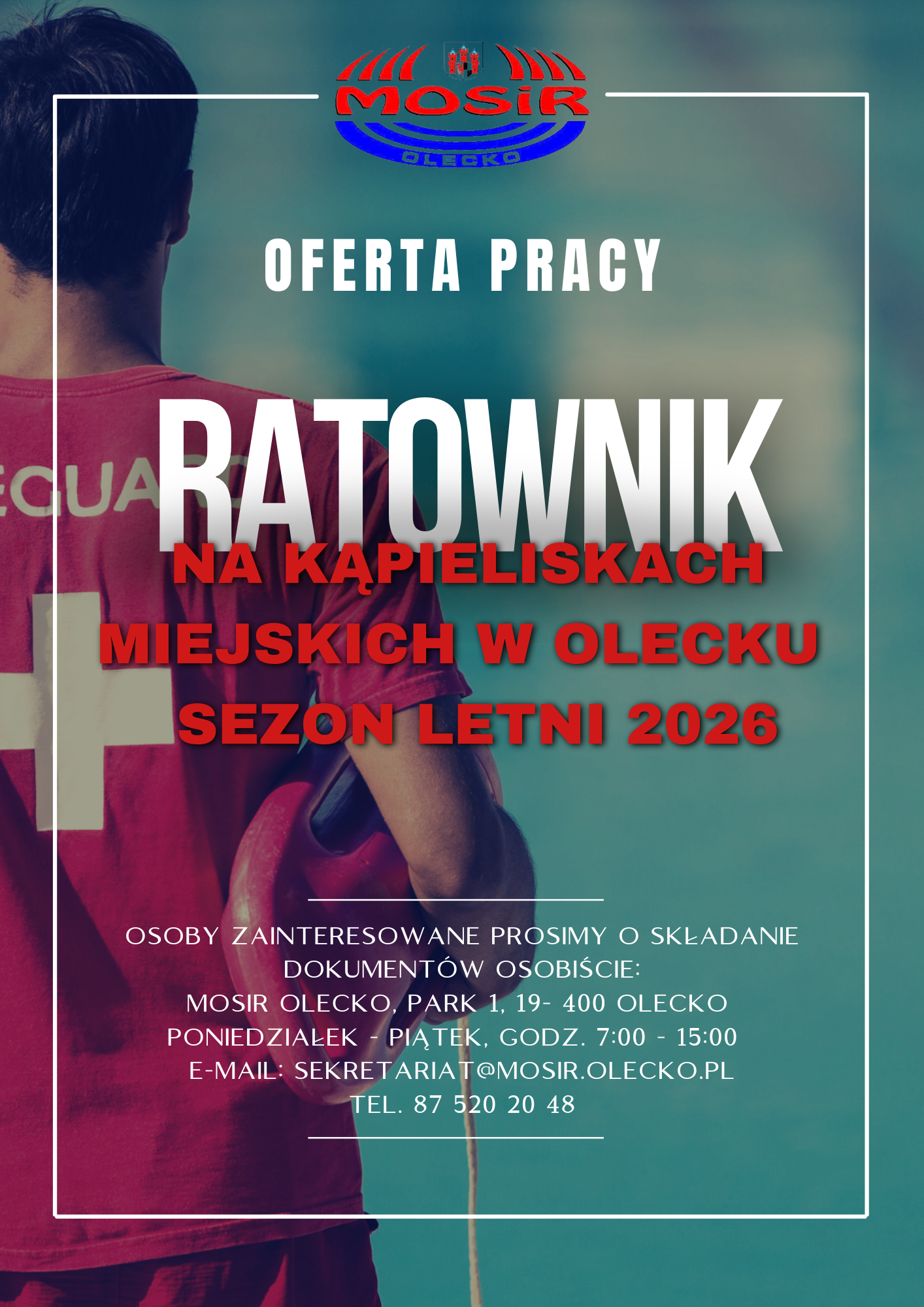 Miejski Ośrodek Sportu i Rekreacji w Olecku ogłasza nabór na stanowisko ratownika na kąpieliskach na jeziorze Olecko Wielkie w sezonie letnim 2026.