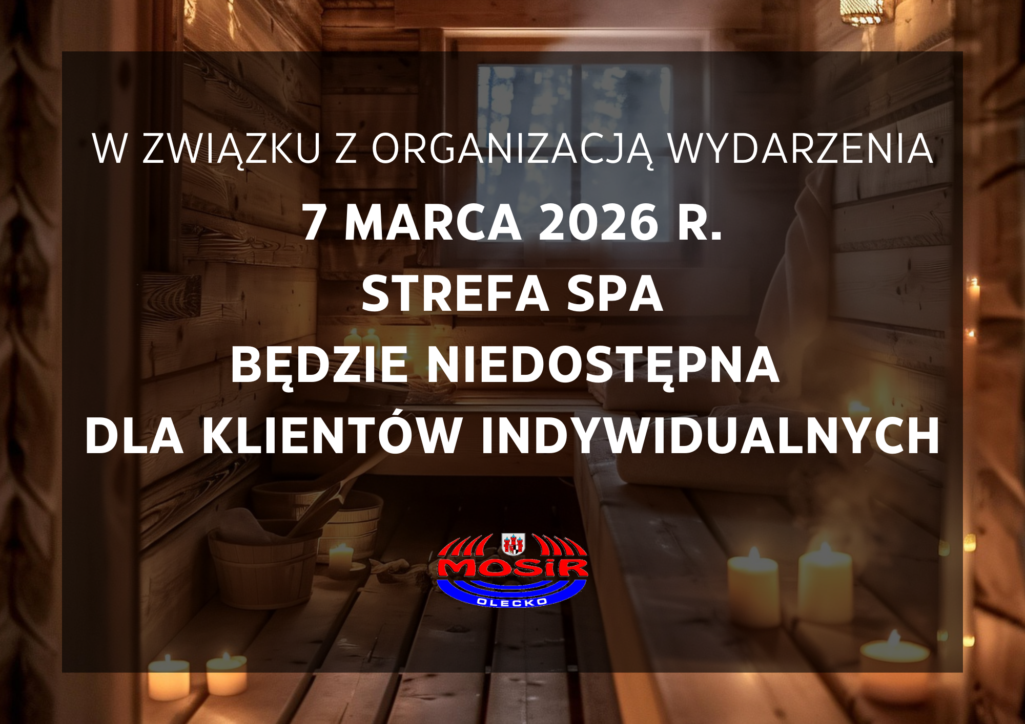 W związku z organizacją wydarzenia “Kobiecy Wieczór Saunowy” w dniu 7 marca 2026 R. strefa SPA będzie niedostępna dla klientów indywidualnych.