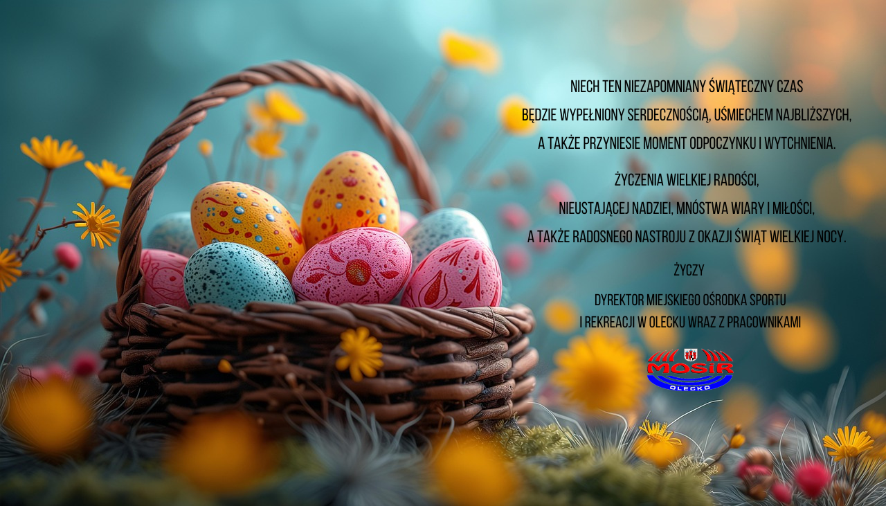 Z okazji świąt Wielkiej Nocy składamy wszystkim użytkownikom obiektów Miejskiego Ośrodka Sportu i Rekreacji, wszystkim mieszkańcom Olecka i gościom odwiedzającym nasze miasto najlepsze życzenia.